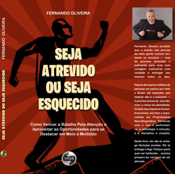 Seja atrevido ou seja esquecido, de Fernando Oliveira, é um guia de desenvolvimento pessoal e comunicação voltado a quem precisa parar de passar despercebido em ambientes e mercados lotados. O livro parte da premissa de que, atualmente, “a visibilidade é o ativo mais valioso” e que, com tantas informações disputando atenção, apenas quem aprende a se destacar consegue ser lembrado.
